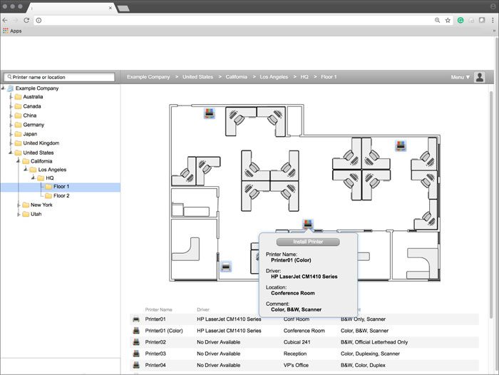 Anwender installieren ihre eigenen Drucker mit einem Klick.